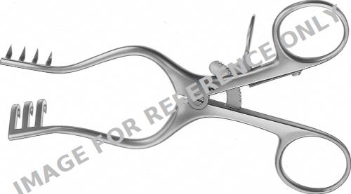 WEITLANER Retractor (self-retaining), 130 mm (5 1/8"), 3 x 4 prongs, jaw depth: 25 mm, jaw width 16 mm, sharp