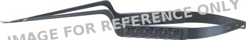 Noir® Micro Scissors, curved, bayonet-shaped, serrated (one blade), sharp/sharp, 220 mm (8 3/4"), round handle