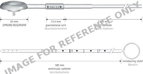 GAV 2.0 Shunt System, DP unit not adjustable, press. horiz. 5 cmH2O, grav. unit not adjustable, 30 cmH2O, press. vert. 35 cmH2O, sterile
