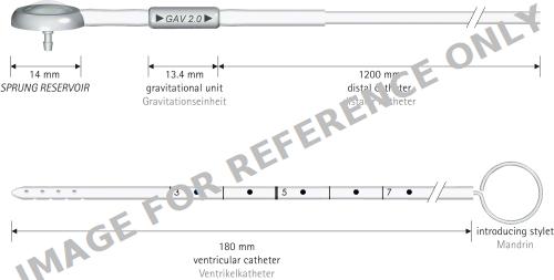 GAV 2.0 Shunt System, DP unit not adjustable, press. horiz. 5 cmH2O, grav. unit not adjustable, 30 cmH2O, press. vert. 35 cmH2O, sterile
