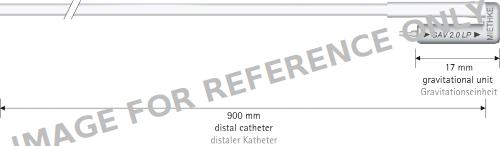 GAV 2.0 Hydrocephalus Valve, DP unit not adjustable, press. horiz. 10 cmH2O, grav. unit not adjustable, 15 cmH2O, press. vert. 25 cmH2O, for lumbo-peritoneal drainage, sterile