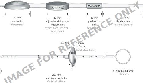 proGAV® 2.0 Shunt System, DP unit adjustable, press. horiz. 0 - 20 cmH2O, grav. unit not adjustable, 20 cmH2O, press. vert. 20 - 40 cmH2O, sterile