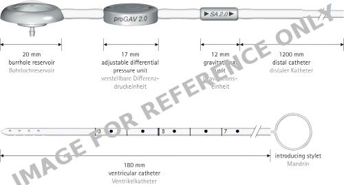proGAV® 2.0 Shunt System, DP unit adjustable, press. horiz. 0 - 20 cmH2O, grav. unit not adjustable, 10 cmH2O, press. vert. 10 - 30 cmH2O, sterile