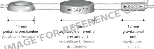 proGAV® 2.0 Hydrocephalus Valve, DP unit adjustable, press. horiz. 0 - 20 cmH2O, grav. unit not adjustable, 25 cmH2O, press. vert. 25 - 45 cmH2O, sterile
