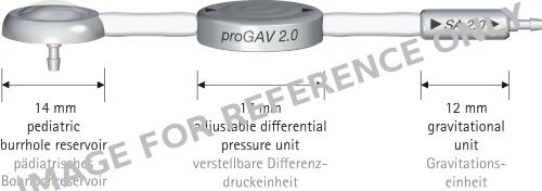 proGAV® 2.0 Hydrocephalus Valve, DP unit adjustable, press. horiz. 0 - 20 cmH2O, grav. unit not adjustable, 25 cmH2O, press. vert. 25 - 45 cmH2O, sterile