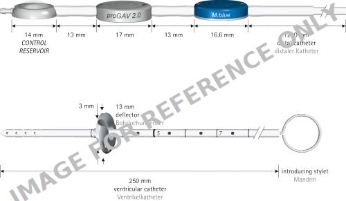 M.blue plus® Shunt System, DP unit adjustable, press. horiz. 0 - 20 cmH2O, grav. unit adjustable, 0 - 40 cmH2O, press. vert. 0 - 60 cmH2O, sterile