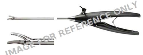ADTEC Needle Holder, TC, complete instrument, curved to left, Ø 5 mm, work. length: 370 mm, single-action, axial handle, with ratchet