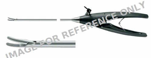 ADTEC Needle Holder, TC, complete instrument, curved to right, Ø 5 mm, work. length: 370 mm, single-action, axial handle, with ratchet